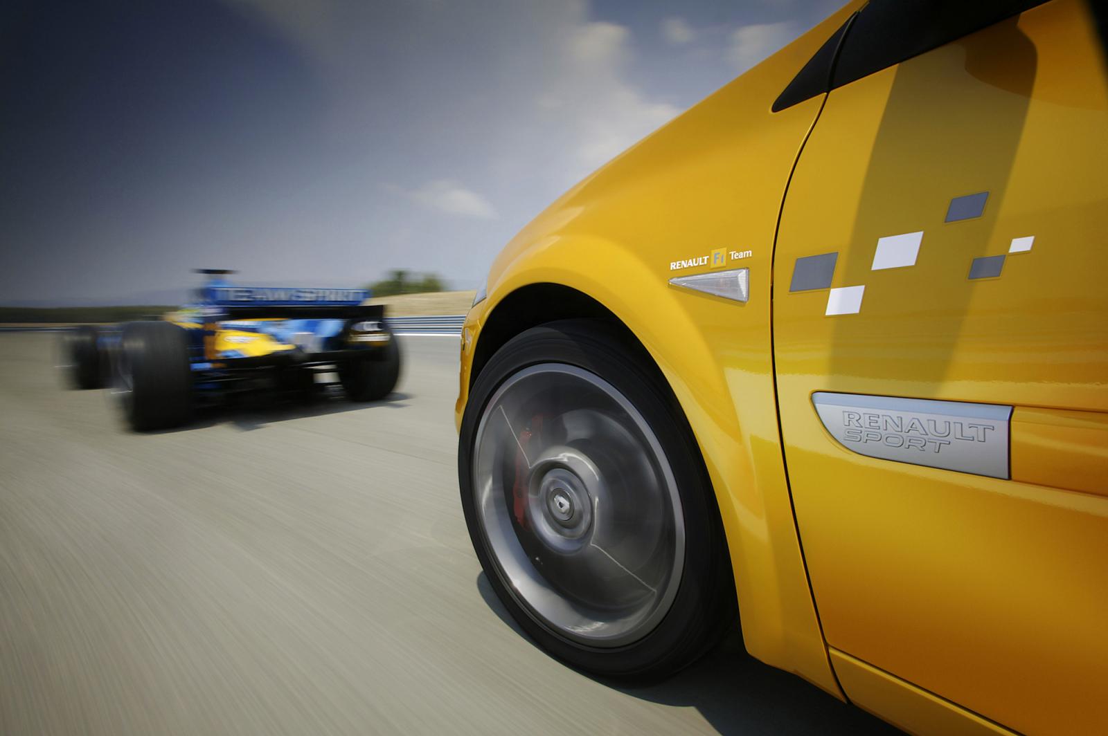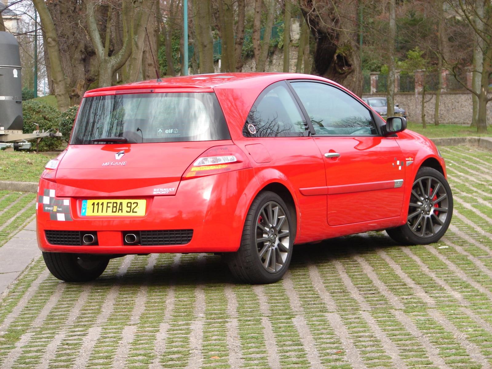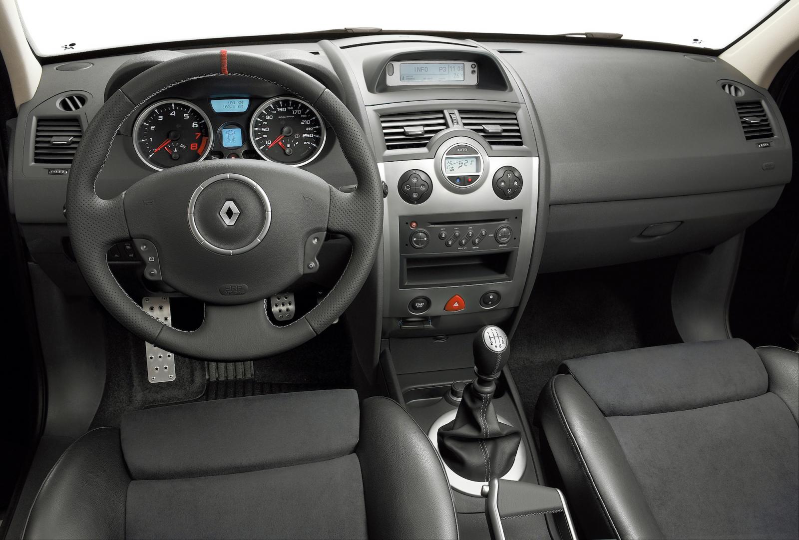 Renault Megane RS R26 F1 Team 2006 14 CV – 29 600 € 4 cylindres en ligne, 16 soupapes (2 ACT) – 1 998 cm3 230 ch à 5 500 tr/mn (115,11 ch/litre) 310 Nm à 3 000 tr/mn (155,15 Nm/litre) Turbocompresseur (Ø ND bars) + échangeurs air/air traction + BV6 manuelle + autobloquant + ASR + ESP 1 355 kilos (5,89 kg/ch) 2 disques ventilés et percés AV et 2 disques pleins AR + ABS + EBD jantes alu 18″ + pneus en 235/40 R18 AV et 235/40 R18 AR 0 à 100 km/h en 6″5; 236 km/h, km DA en 26″6 |