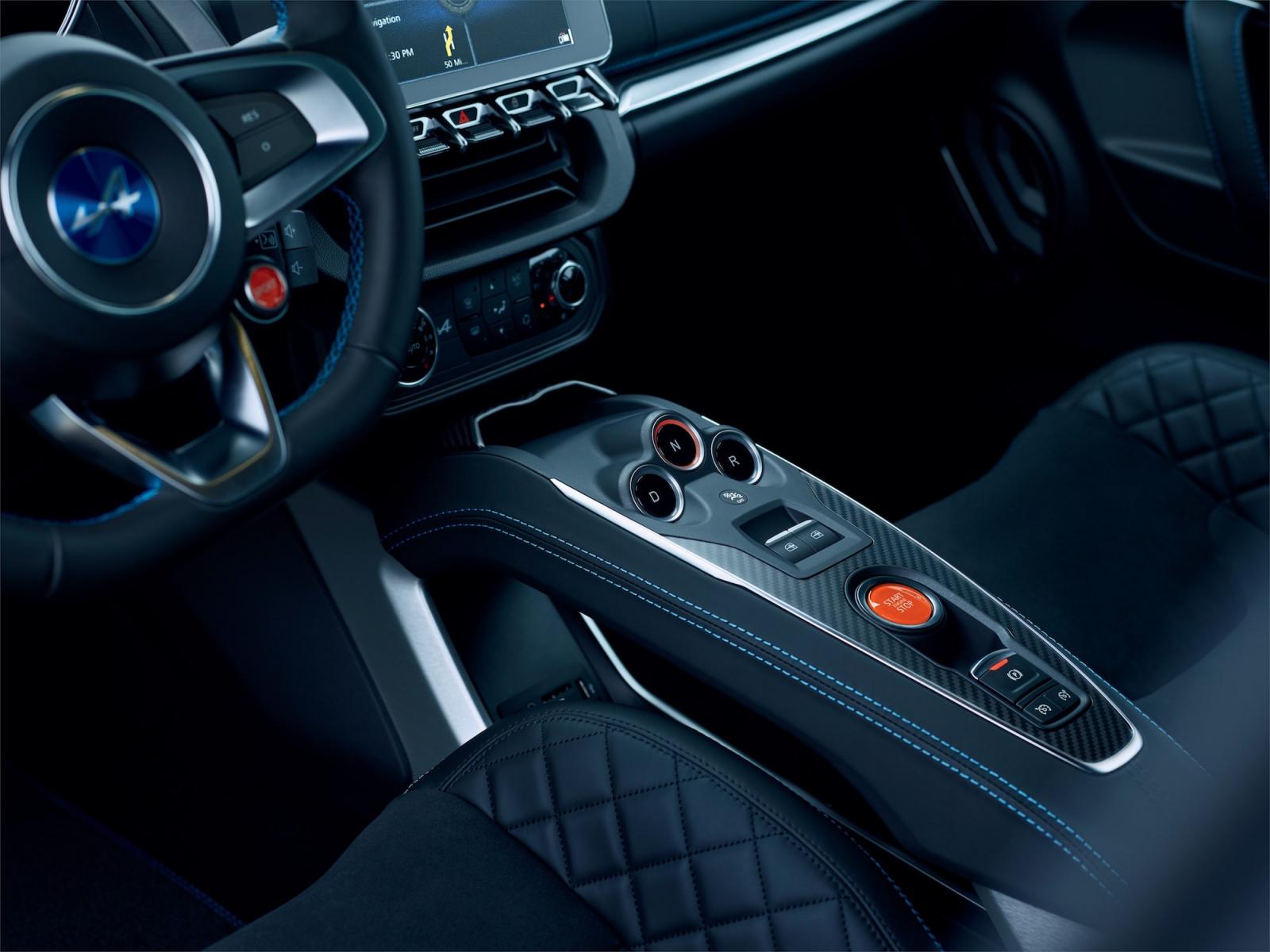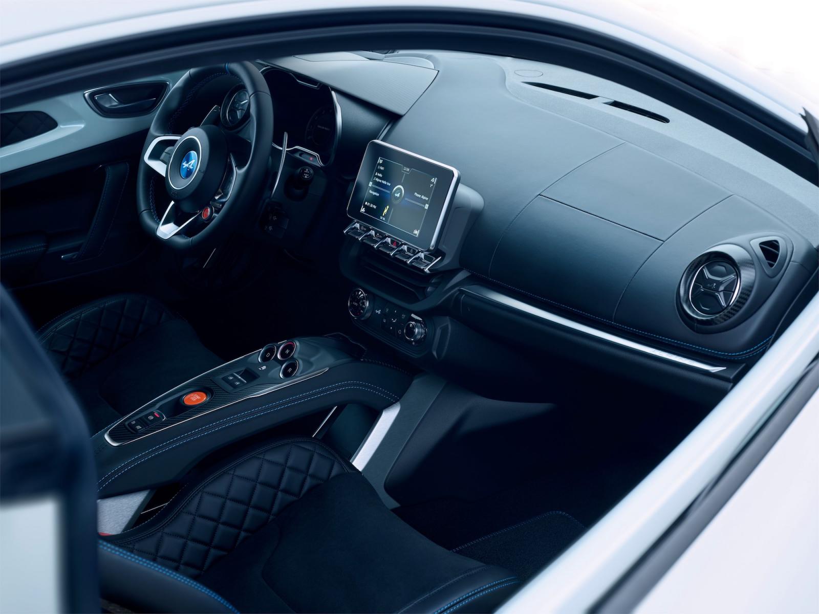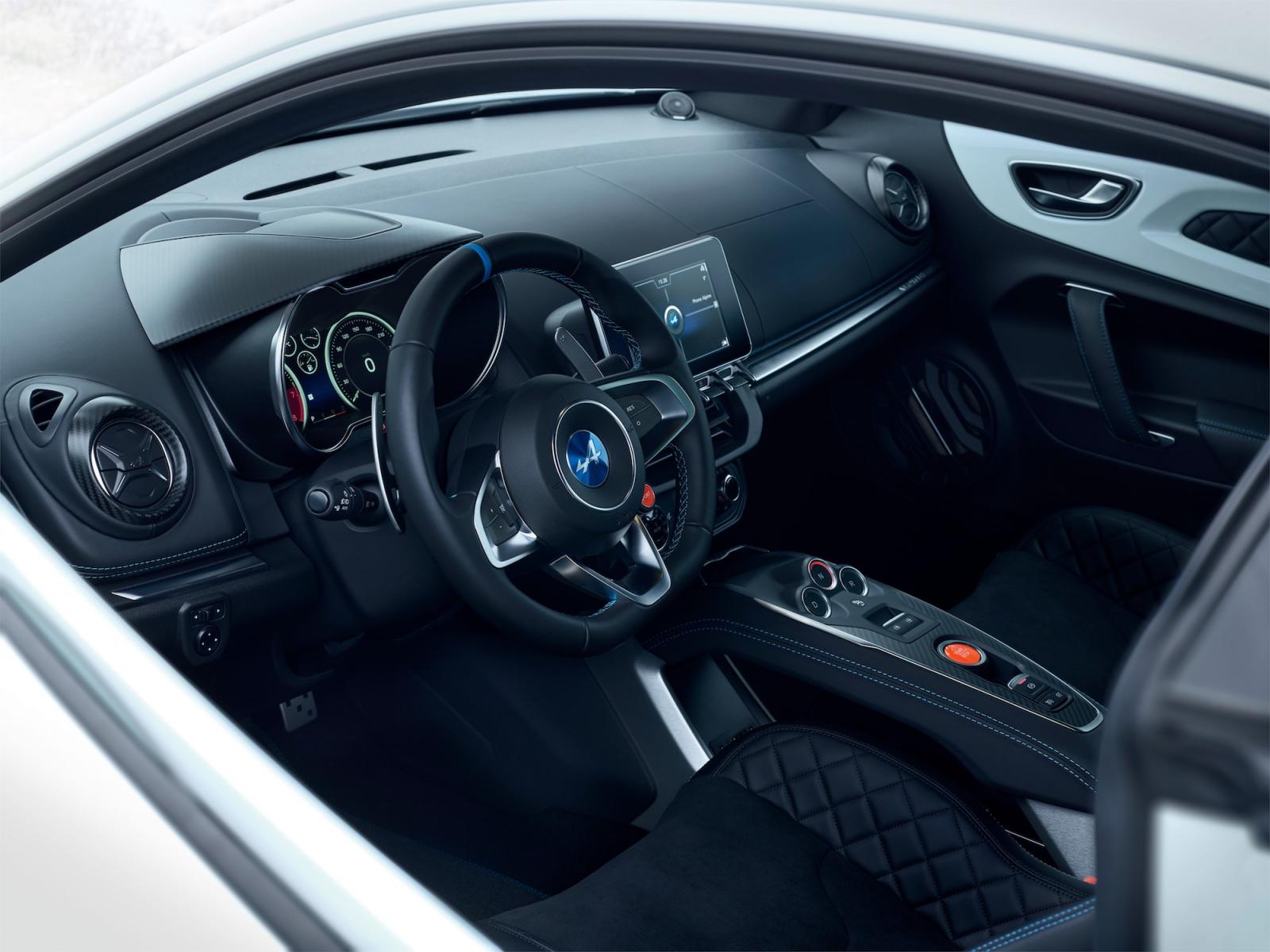 collection Jean Rédélé à Paris, esquissant chaque modèle en trente secondes chrono pour en capturer l’essence. Les phares avant jumelés, les flancs sculptés, l’arête distincte du capot, la lunette arrière enveloppante : autant d’éléments directement hérités de la Berlinette d’origine. Les feux LED en forme de X à l’arrière et les clignotants dynamiques, eux, projettent résolument la A110 vers l’avenir. La silhouette, épurée et intemporelle, est le fruit d’une collaboration étroite entre les équipes de design et d’ingénierie : un fond plat et un diffuseur fonctionnel permettent d’éviter tout aileron arrière, préservant ainsi la pureté de la ligne. Construite sur une structure en aluminium — caisse bonded-rivetée — elle pointe à seulement 1 080 kg dans sa configuration la plus légère.