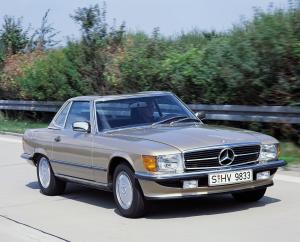 1985 : Grand restylage de la R107 : spoiler avant élargi, jantes 15 pouces, nouveau six-cylindres M103 (300 SL, 188 ch), V8 4,2 litres (420 SL), et 560 SL réservée aux USA/Japon/Australie. Le catalyseur est disponible à la commande.