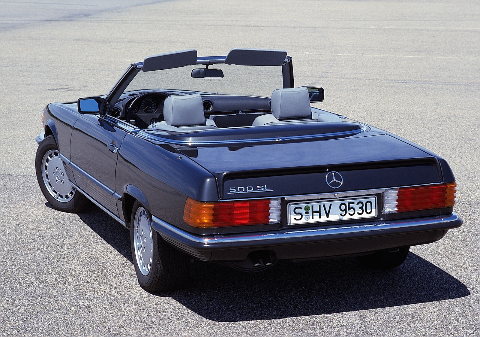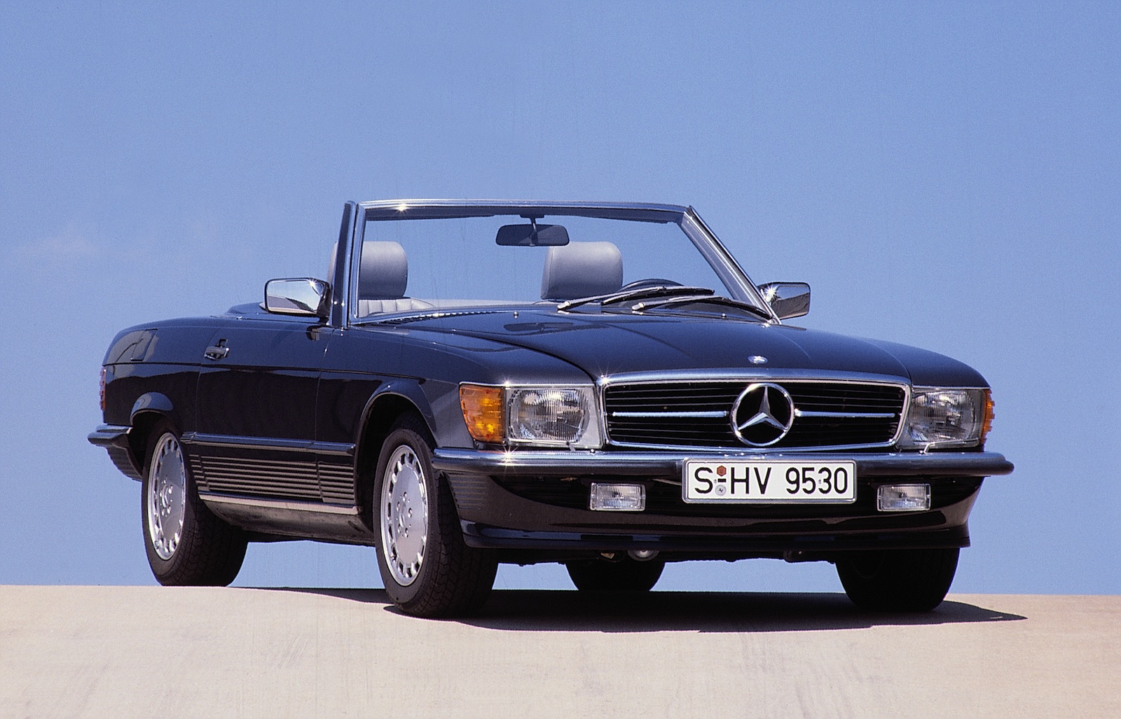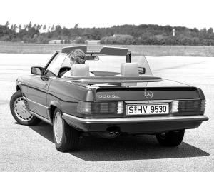 1989 : Fin de production de la R107 à Sindelfingen. La successeur R129, dévoilée au Salon de Genève, reprend le flambeau et est fabriquée à Brême. Au total, 237 287 SL R107 ont été produites en 18 ans.