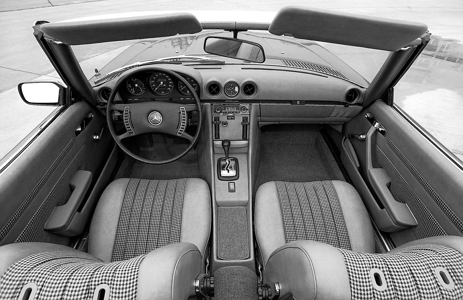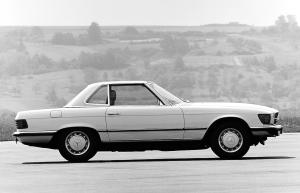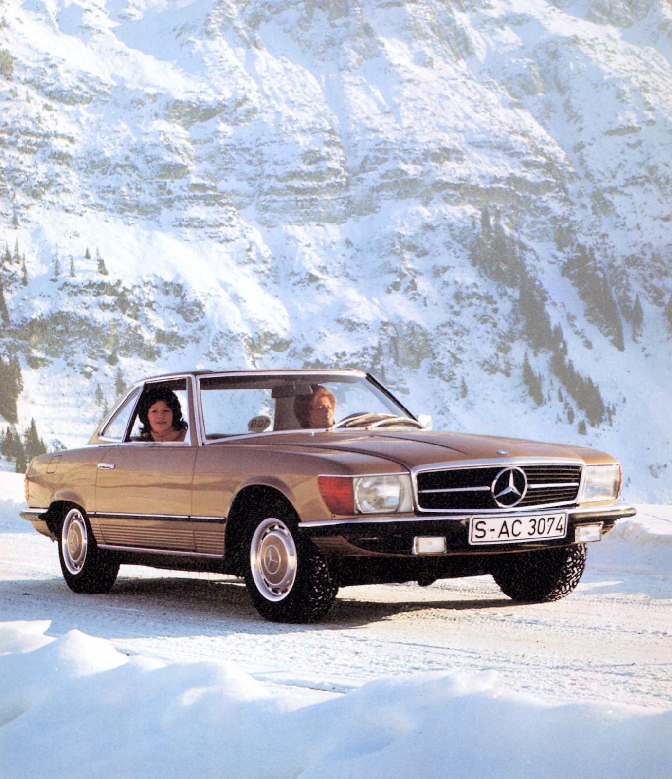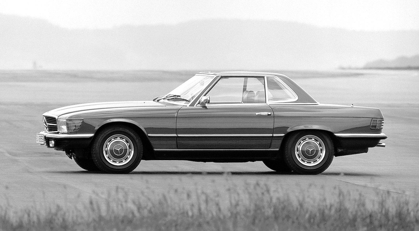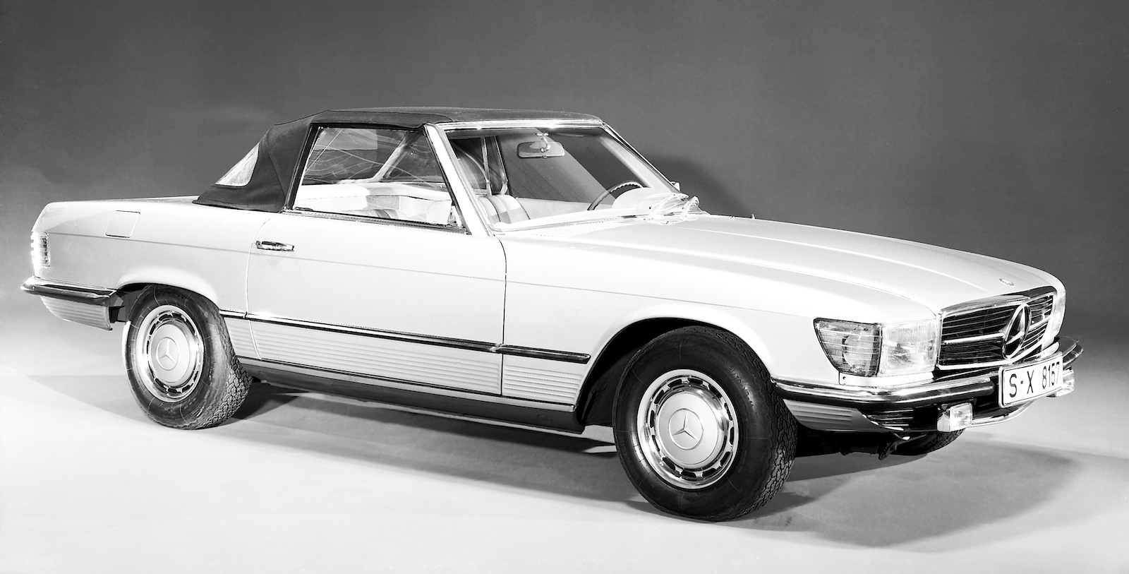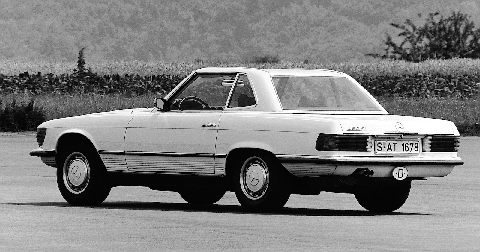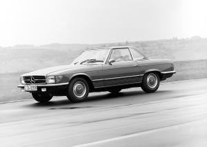 1972 : Lancement de la 450 SL, animée par le nouveau V8 de 4,5 litres M117 à 225 ch, associé à la boîte automatique 3 rapports. Présentation simultanée de la SLC (C107), le coupé à empattement long dérivé de la SL. Premier Salon de Paris pour la SLC.