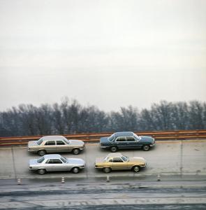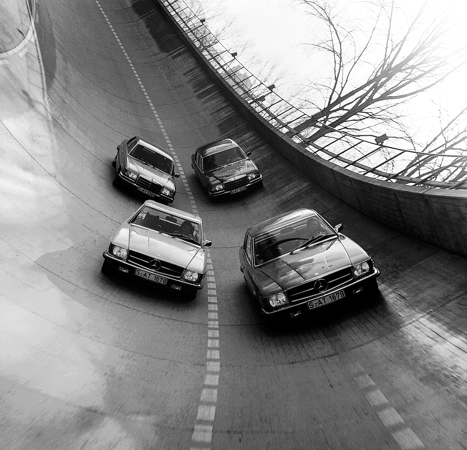 1971 : En avril, sur le circuit de Hockenheim, Mercedes-Benz présente la 350 SL R107, successeur de la Pagode W113. Elle inaugure un nouveau style de design qui influencera toute la gamme Stuttgart.