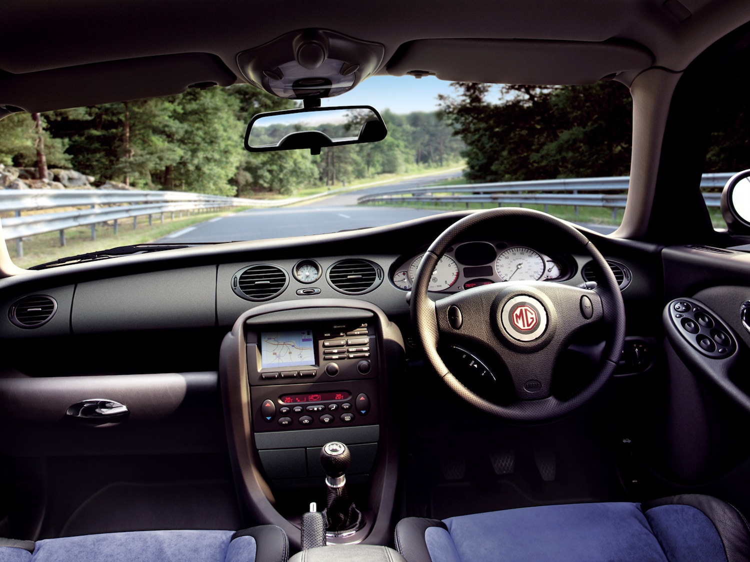 Le V8 de 4,6 litres ne cache pas son origine avec son cheval qui galope sur son boîtier d’admission. Emprunté à la Ford Mustang, il confère un caractère nouveau à la berline anglaise qui joue les délurées. Classique et « rustique », ce V8 développe 260 ch à 5 000 tr/mn et 410 Nm à 4 000 tr/mn. Avec son rapport de 56,50 ch/litre, il nous rappelle ses origines américaines : plus couple qu’envolées lyriques à l’italienne. A noter une électronique moteur revue pour passer les normes de pollution européennes. En complément, le conducteur doit composer fermement avec la boîte manuelle 5 rapports Tremec d’origine US également. Passant toute la puissance aux roues AR par un différentiel autobloquant Hydratrac (à la manière d’un coupleur Haldex via une pompe hydraulique), la MG 260 ZT n’affole pas les chronos comme espéré : 0 à 100 km/h en 7″4; 250 km/h, km DA en 27″7. Heureusement que les borborygmes du V8 apportent l’ambiance. Tout l’essieu AR a été intégralement revu pour digérer le changement de programme (propulsion vs traction). La suspension AR multibras est ainsi inédite et ancrée sur un faux châssis. Les combinés ressorts/amortisseurs ont été piochés dans le catalogue Eibach et Bilstein tandis que les barres antiroulis sont plus grosses que dans la MG 190 ZT. Le freinage n’est pas totalement au diapason avec des disques AV ventilés et pleins AR, mais des étriers flottants. Pour les aides à la conduite, le « pilote » ne peut compter que sur un ABS et un ASR. Pour le reste, son pied droit et ses mains feront le reste pour maintenir sur le goudron cette berline de sport de 1,7 tonnes. Le comportement routier reste sain et franc sur le sec, mais sur le mouillé en revanche il conviendra d’être plus prudent. L’habitacle ne varie pas comparé au reste de la gamme. Les habitués ne seront pas dépaysés. Sellerie cuir intégrale, mais planche de bord et revêtement en camaïeu de noir et gris anthracite. Triste mais sans faute de goût. L’équipement de série est top, surtout à ce tarif avec même le GPS de série ! Dans les bons points, des sièges baquets qui maintiennent bien le corps dans les phases d’appuis.