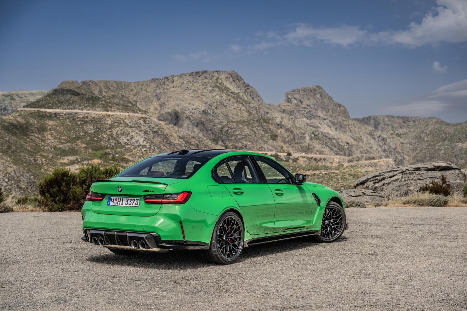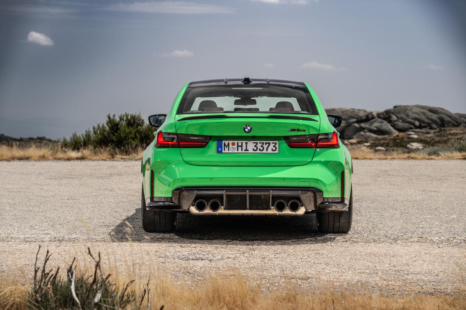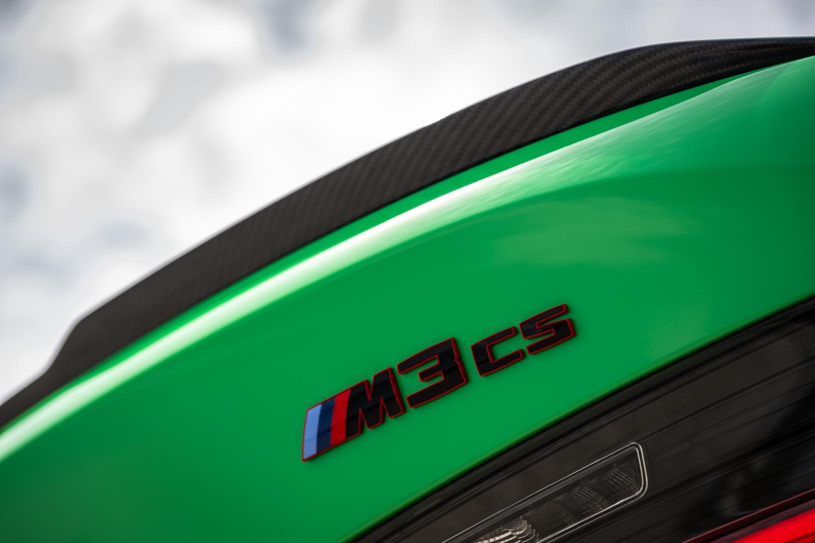 L’avant du véhicule est doté d’une calandre BMW sans cadre, qui permet de gagner du poids, et donne une impression de légèreté rappelant les voitures de la compétition automobile. Conçue spécialement pour ce modèle, elle se distingue par des lignes de contour rouges et le badge « M3 CS » sur la partie supérieure des deux barres horizontales de la calandre. Le badge du modèle à l’avant et son homologue sur le couvercle du coffre ont des surfaces noires avec un bord rouge.