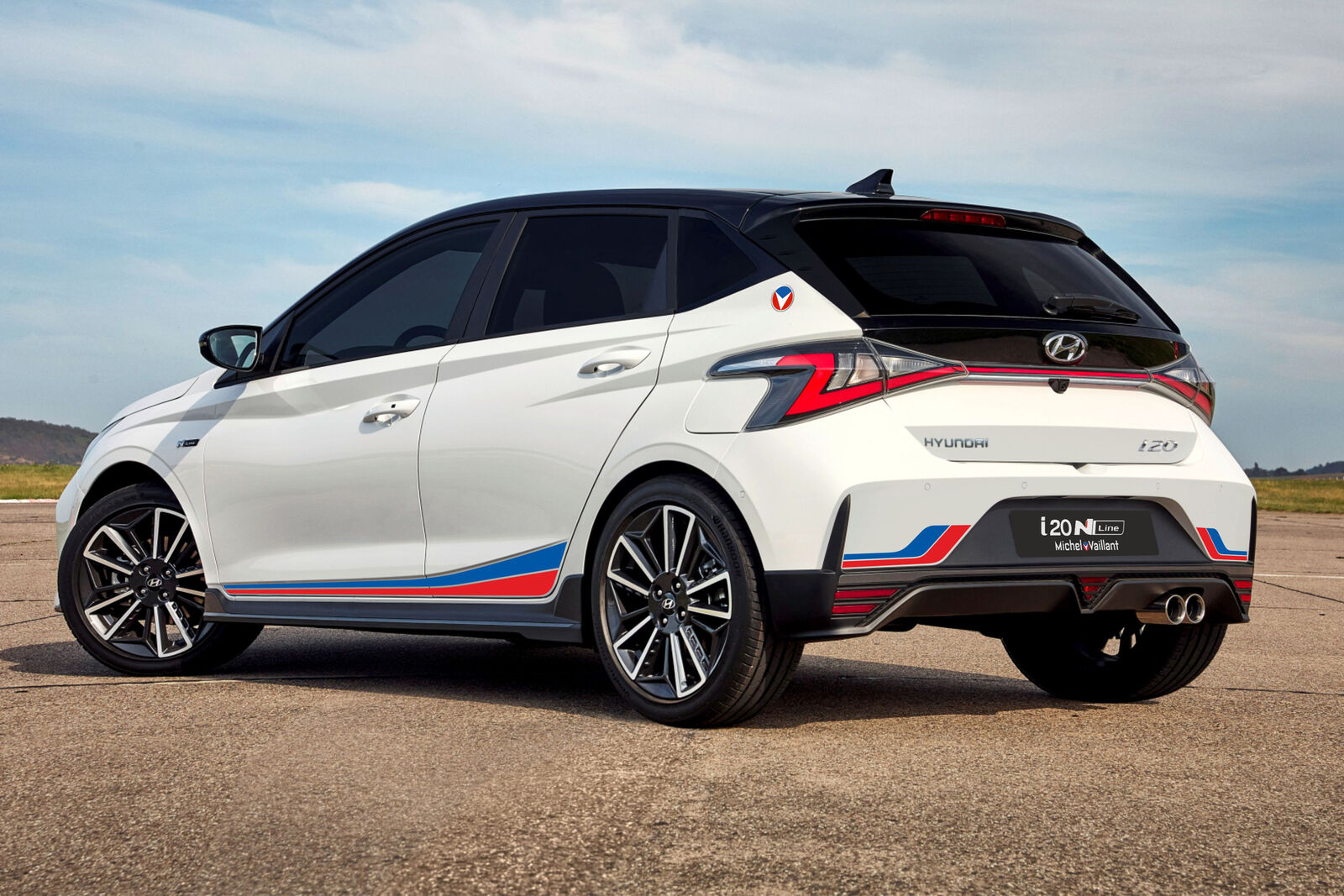 Prévue à 500 exemplaires, i20 N Line Michel Vaillant se distingue par ses éléments extérieurs spécifiques : bouclier avant et arrière, jupes latérales, jantes 17 pouces, double sortie d’échappement et badges Michel Vaillant. Un pack de personnalisation aux couleurs Michel Vaillant est proposé en accessoires à 815€ TTC. Il se compose de bandes rouge et bleu sur les portières et le bouclier arrière ainsi que d’un becquet spécifique (non présent sur l’illustration). Basée sur une finition Creative, i20 N Line Michel Vaillant multiplie les touches exclusives à l’intérieur : sellerie spécifique avec surpiqûres rouges, volant et levier de vitesses N Line et pédalier aluminium.