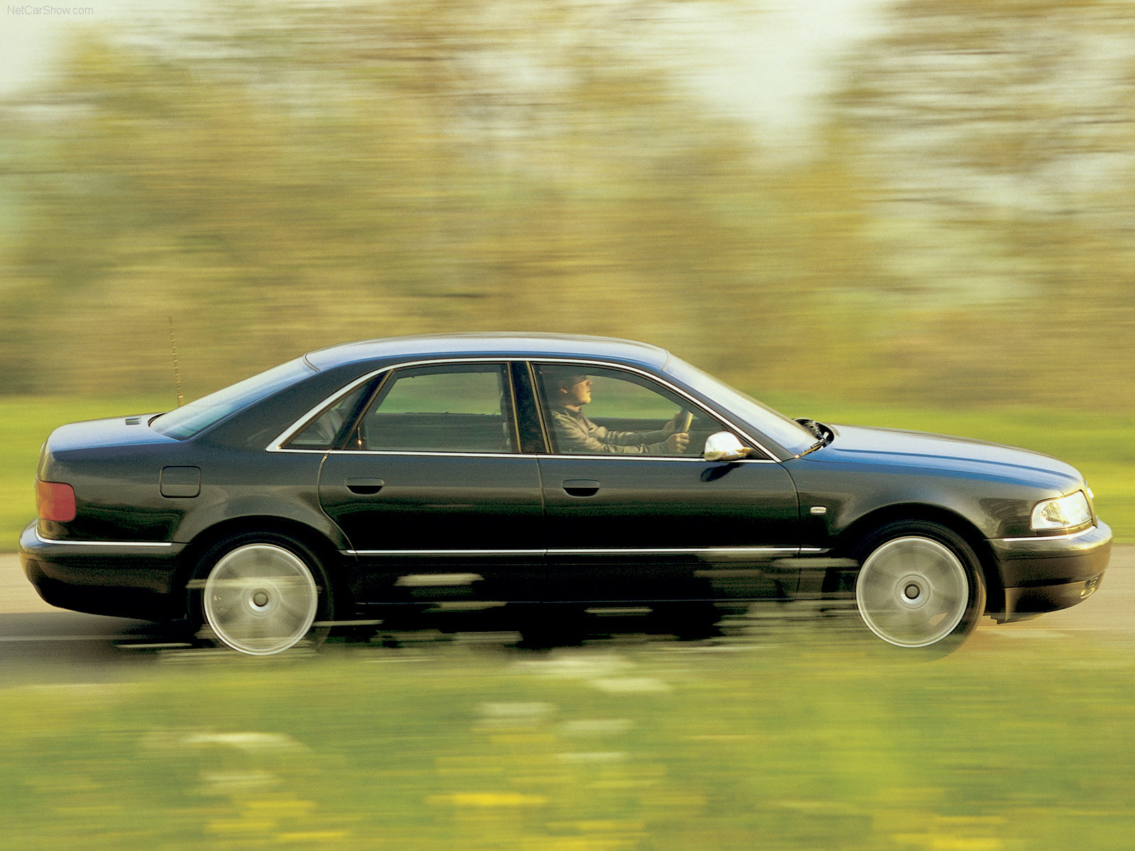 Le V8 4,2 litres développant initialement 300 ch dans l‘Audi A8 4.2 a été retouché pour porter haut et fort ses nouvelles valeurs (340 ch à 6 600 tr/mn et 410 Nm à 3 500 tr/mn). Toujours tout alu, la partie haut moteur a été retravaillée avec des arbres à cames redessinés pour plus de rotations dans les tours (régime maxi à 7 000 tr/mn). Du coup, les poussoirs hydrauliques de soupapes d’admission incapables de suivre la cadence sont remplacés par des poussoirs plus légers à compensateurs mécaniques. Un taux de compression plus élevé (qui passe à 11,6:1) et une électronique (Bosch Motronic) revue participent à l’effort de guerre tout comme le collector d’admission majoré et variable pour préserver de la souplesse à bas régime. Cerise sur le gâteau, ce V8 sportif est adjoint d’une boîte de vitesses mécanique à 6 rapports. Si l’embrayage est musclé, le chrono revendiqué est excellent pour une berline de ce gabarit (1,9 tonnes !) : 0 à 100 km/h en 7″0; 250 km/h, km DA en 26″3. Pour mener à bien ce carrosse tout alu, Audi a monté un essieu AV à 4 bras, et un essieu multibras AR. Pour la sécurité et la motricité, la transmission Quattro est de série, composée d’un interpont Torsen qui réparti le couple entre les deux essieux. Le système EDS se charge en freinant les roues de jouer les antipatinages. Le freinage est confié à 4 disques ventilés et de la paire ABS+EBV. Les quatre roues alliages sont chaussées de pneus en 245/45 ZR18. Même sur le sinueux, l’Audi S8 s’en tire avec les honneurs, grâce à ses trains roulants élaborés, le Quattro et une fermeté des suspensions qui dégrade ce beau tableau sur chaussée déformée… L’habitacle est un hymne au luxe sobre et discret. Rien ne manque à l’appel, tant en équipements de confort avec moult petites attentions, qu’en sécurité (6 Airbags). Les sièges ultra-confort et la position de conduite sur mesure sont au top. Charme et discrétion semblent être les maîtres mots de l’Audi S8…