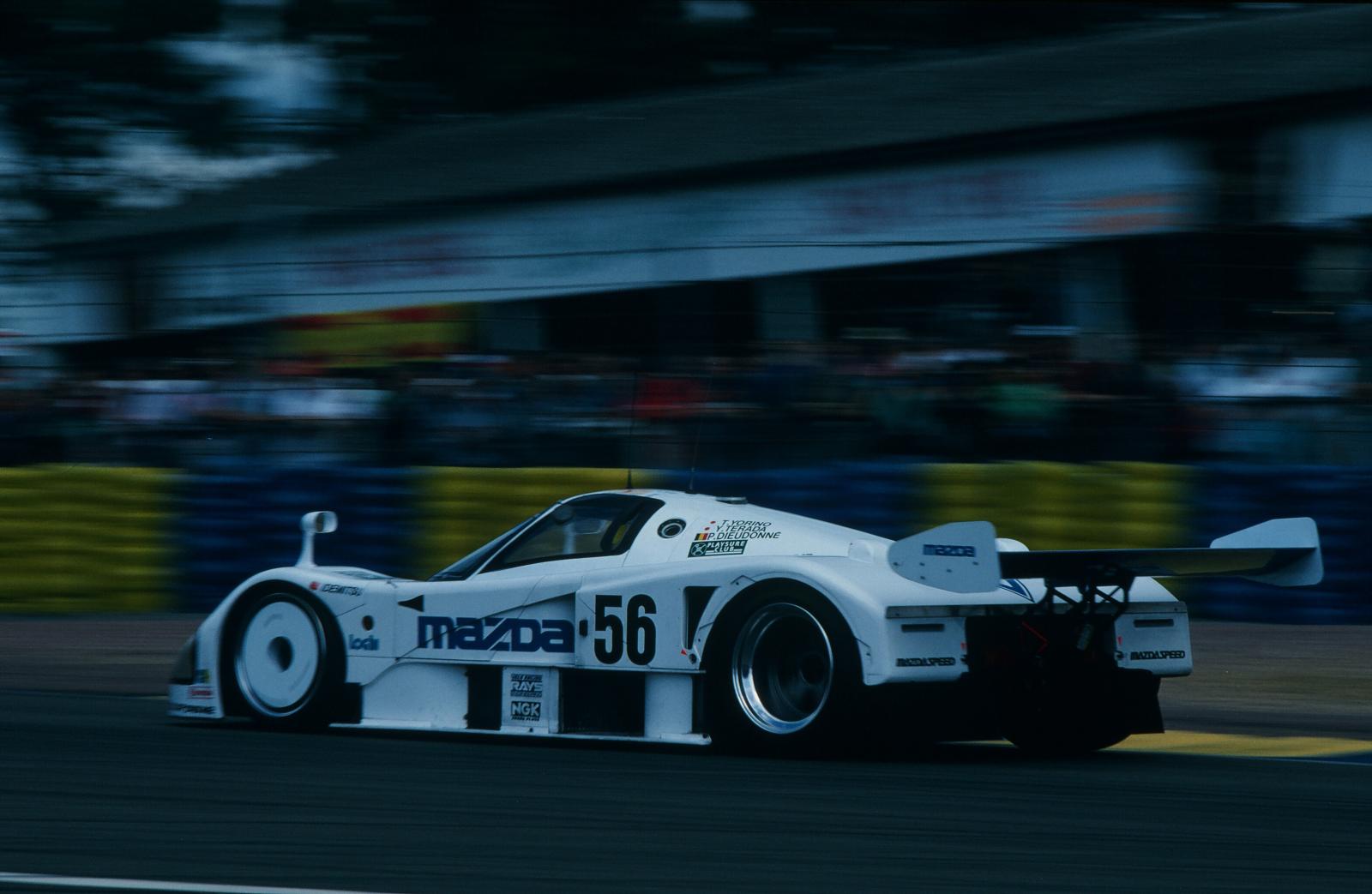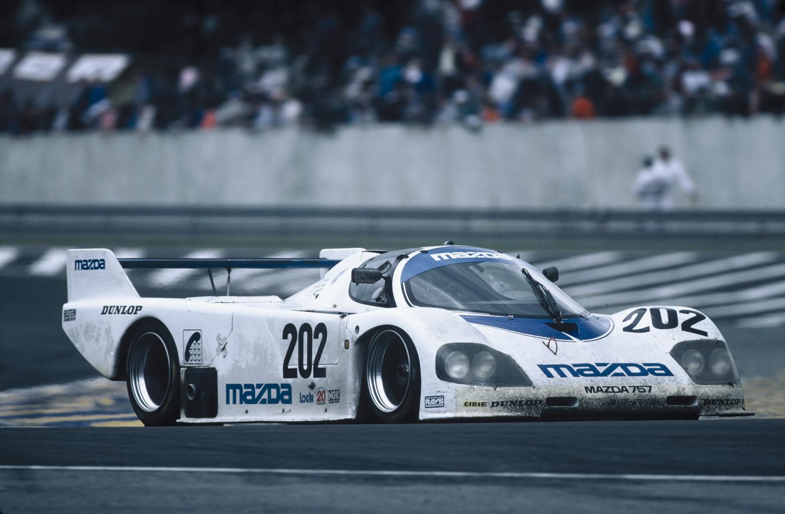 Pour Le Mans 1985, Mazda engagea deux Mazda 737C à double rotor dans la classe Groupe C2. La voiture numéro 85, dont les pilotes étaient tous japonais, s’est classée troisième. Le moteur rotatif a une nouvelle fois démontré son potentiel et Mazda envisage désormais de passer à la classe supérieure. Dans le but de viser des positions plus élevées au classement général, Mazda passa au Mans 1986 à la classe IMSA GTP avec la nouvelle Mazda 757. Le moteur passe à trois rotors et le châssis est entièrement nouveau. Lors de leur première année, aucune des 757 n’a terminé la course suite à des problèmes avec leurs transmissions Porsche, mais sous la plume du designer britannique Nigel Stroud, la Mazda 757 était une déclaration d’intention. Cette volonté s’est concrétisée en 1987 lorsque la Mazda 757 de David Kennedy, Pierre Dieudonné et Mark Galvin a remporté la classe IMSA GTP et terminé septième au classement général du Mans 1987.
