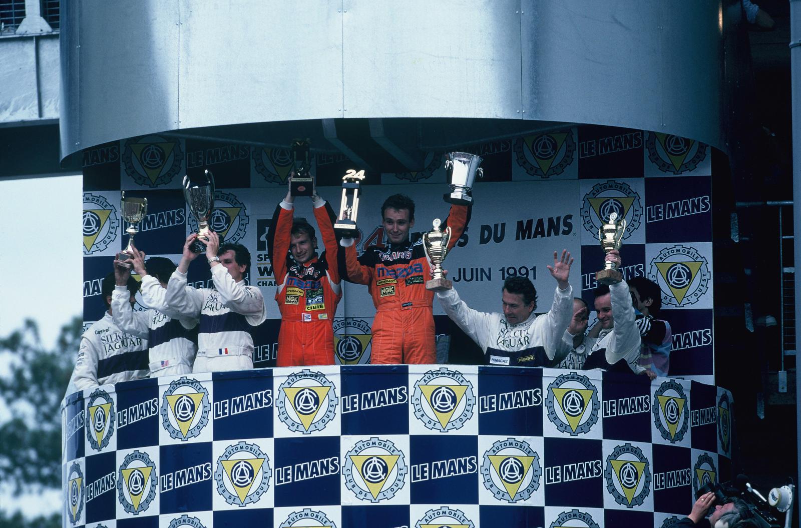 Pour les fans présents au Mans en 1991, le souvenir le plus marquant sera sans doute l’incroyable cri des moteurs rotatifs Mazda et les flammes qui sortaient des pots d’échappement la nuit, alors que le trio de Mazdas s’élançait dans l’obscurité. Les ingénieurs Mazda, qui ont travaillé dur pour obtenir la reconnaissance ultime de leur travail, se souviendront longtemps de cette victoire, alors que l’équipe gagnante était véritablement internationale, les efforts de Mazdaspeed étant soutenus par l’organisation française ORECA, tandis que le concepteur de châssis britannique Nigel Stroud et le consultant belge de l’équipe, Jacky Ickx, six fois vainqueur au Mans, ont également joué un rôle important dans ce succès.