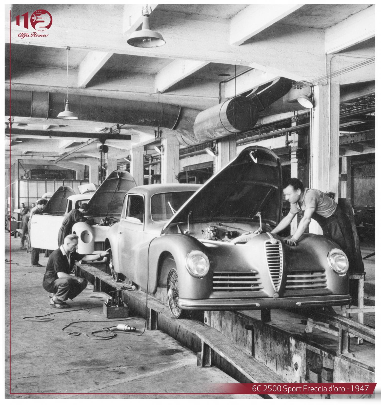 Après la Seconde Guerre mondiale, les usines ont dû être reconverties de la production de guerre aux activités civiles. L’usine du Portello avait été gravement endommagée suite aux bombardements de 1943 et 1944. Tout recommencer était un défi complexe et impliquait presque inévitablement la relance du dernier modèle lancé par l’entreprise, d’autant plus que diverses pièces mécaniques de 6C 2500 avaient survécu.