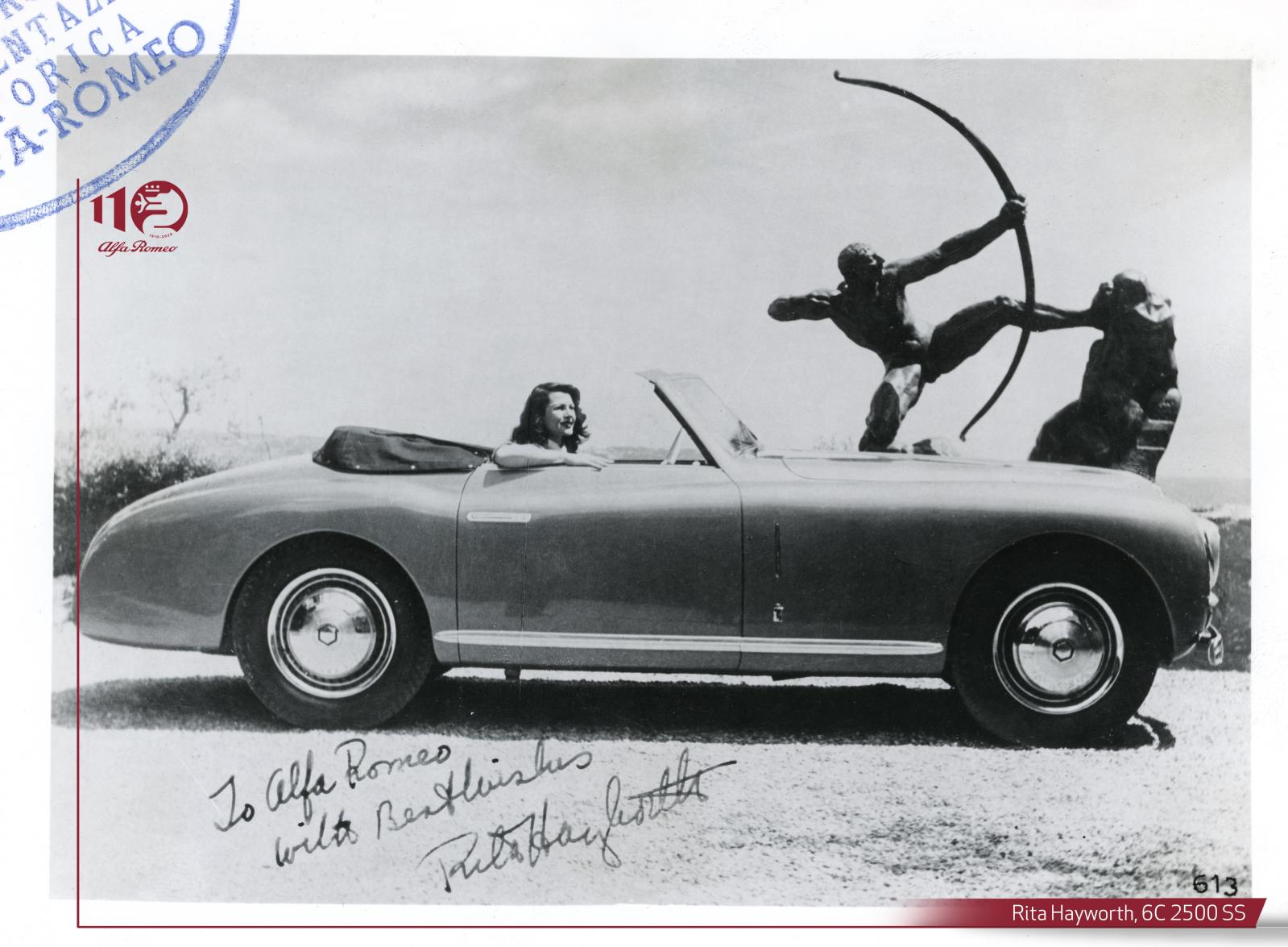 Tyrone Power a conduit son Alfa Romeo 6C 2500 à travers la ville de Rome, Juan Peron et sa femme Evita en voulaient une pour se montrer à Milan. Ce modèle avait été acquis par des noms célèbres tels le roi Farouk d’Égypte et le Prince Rainier III de Monaco. Le 27 mai 1949, lorsque Rita Hayworth arrive pour épouser le prince Ali Khan à la mairie de Cannes, elle est au volant d’une 6C 2500 qu’elle venait de recevoir en cadeau de mariage. Cet élégant modèle gris avec capote bleu foncé disposait d’un revêtement intérieur parfaitement coordonné aux vêtements de la mariée.