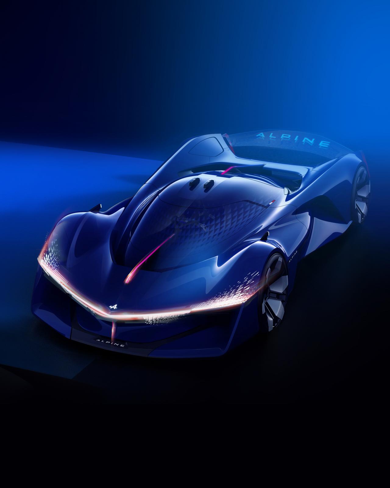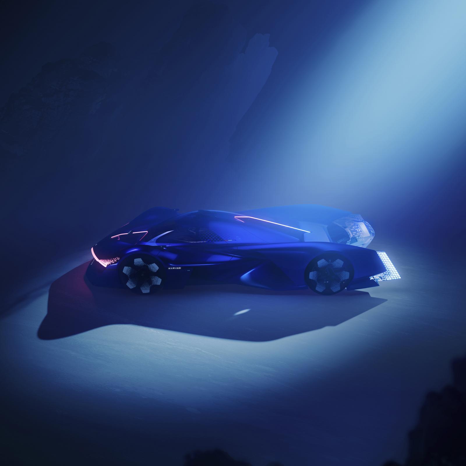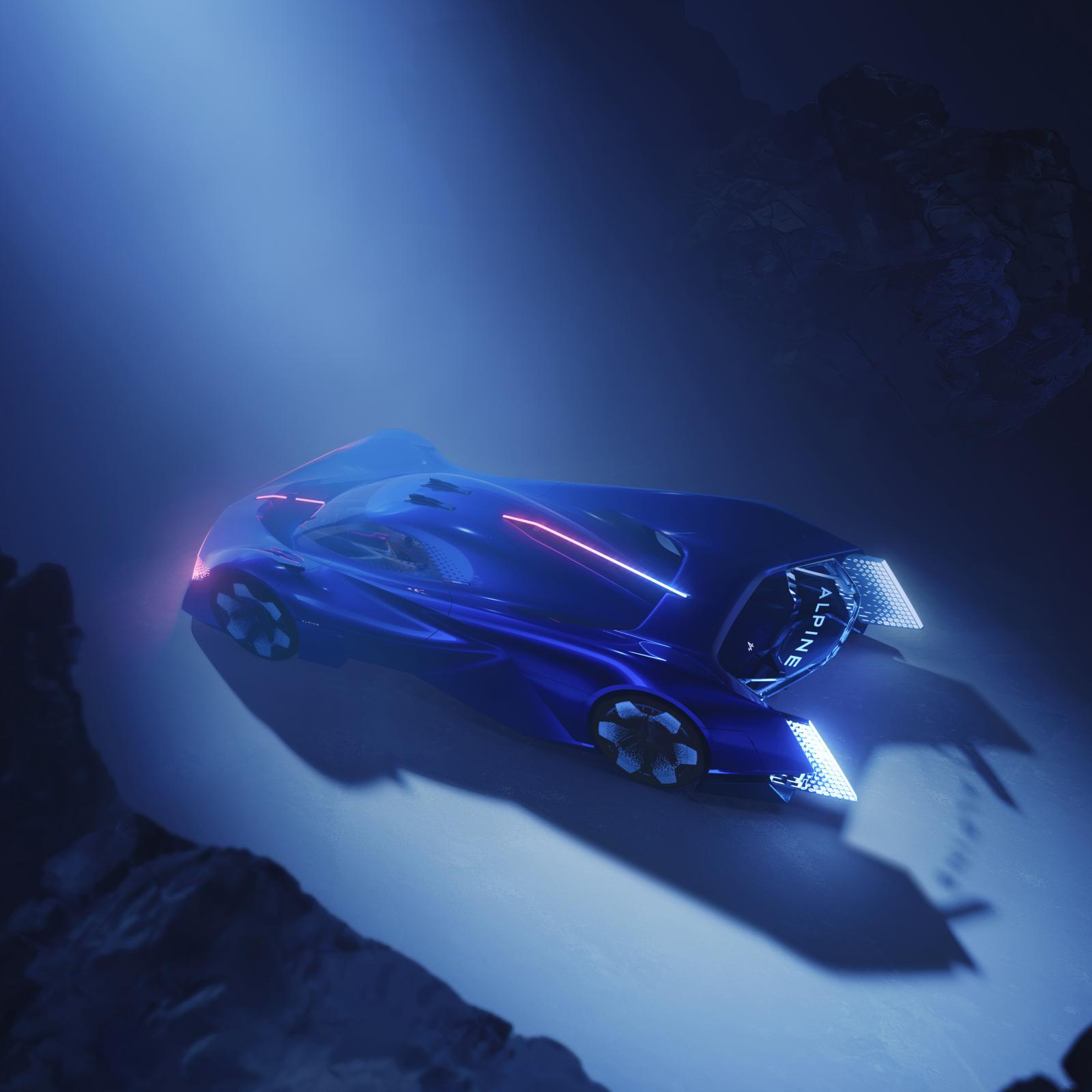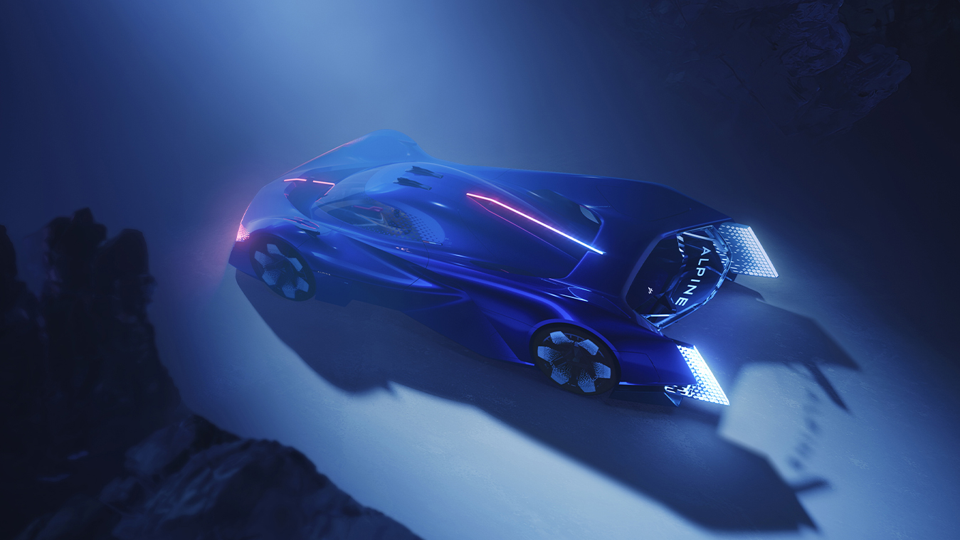 Les couleurs et matières utilisées sont, elles aussi, évocatrices de ce à quoi les Alpine de demain ressembleront : des modèles où l’émotion et la technologie se rencontreront pour faire de l’expérience de conduite une expérience unique et authentique. Des éléments et états naturels tels que le feu, l’eau, la glace, le vent et la vapeur d’eau inspirent cet objet qui impressionne par ses formes généreuses, sa carrosserie fluide et aérodynamique, outre l’impression de pureté qui s’en dégage. Son design est celui d’une voiture agile et élégante, qui peut s’adapter facilement en Alpine de route ou en Alpine de course.