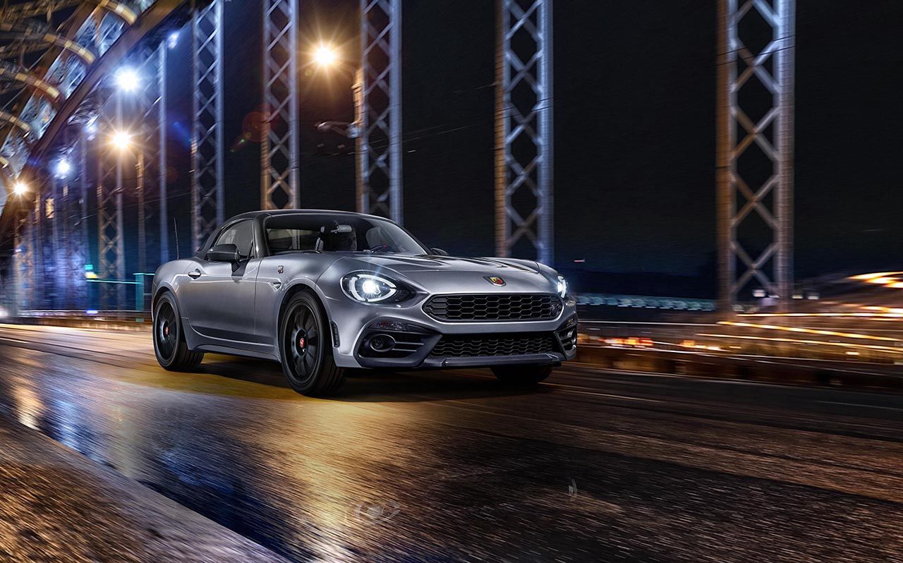 Le toit rigide en fibre de carbone, doublé à l’intérieur, est doté d’une grande vitre et d’un dégivreur efficace permettant de la nettoyer en moins de trois minutes. Le toit rigide pèse seulement 16 kilogrammes et contribue à l’amélioration du format compact et de la rigidité de torsion globale de la voiture. Il assure l’isolation thermique et acoustique, tout en offrant une vue arrière ample. Aussi, il peut être retiré et réinstallé très facilement en quelques étapes. Ceci permet de profiter des sensations en plein air ou de basculer rapidement vers le style grand tourisme affirmé, qui a toujours été une partie clé de l’ADN de la marque Abarth, en seulement quelques minutes. Ces deux personnalités, aux différences uniques, incarnent parfaitement les valeurs fondamentales de la marque en matière de performance, de savoir-faire et d’excellence technique. L’Abarth 124 a été conçue pour instaurer un nouveau standard dans le segment des roadsters sportifs, ce qu’elle parvient à faire grâce à des solutions techniques avancées, comme son poids concentré dans l’empattement, son moteur installé derrière l’essieu avant, sa mécanique sophistiquée et ses matériaux spéciaux, offrant un rapport poids/puissance record. En outre, la parfaite répartition du poids à 50/50 en marche assure un retour excellent et une agilité optimale. La suspension est dotée d’un dispositif à double triangulation à l’avant et d’un système à cinq bras à l’arrière, avec une configuration spécialement étalonnée pour améliorer la stabilité en virage et au freinage.