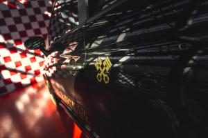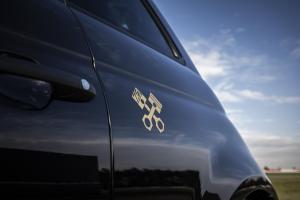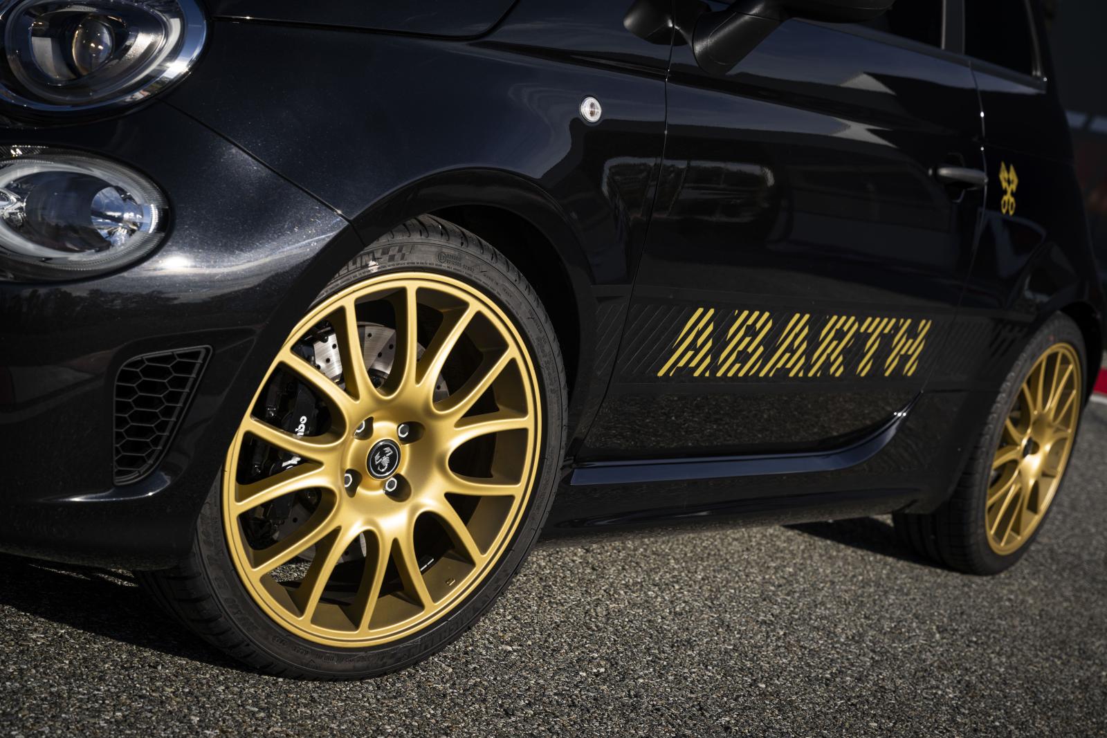 L’extérieur attire immédiatement le regard. Pour la première fois, un scorpion recouvre l’intégralité du toit et se détache sur la livrée totalement noire grâce au contraste avec son corps doré. Le modèle a été enrichi de divers éléments pour le rendre encore plus unique, comme les vitres arrière surteintées, les logos Abarth dorés des deux côtés et les autocollants originaux 75° Anniversario en forme de pistons. De plus, cette série spéciale est équipée de jantes exclusives en alliage dorées de 17 pouces, et d’un système de freinage performant avec des disques ventilés et perforés de 305×28 mm et d’étriers en aluminium Brembo noirs.