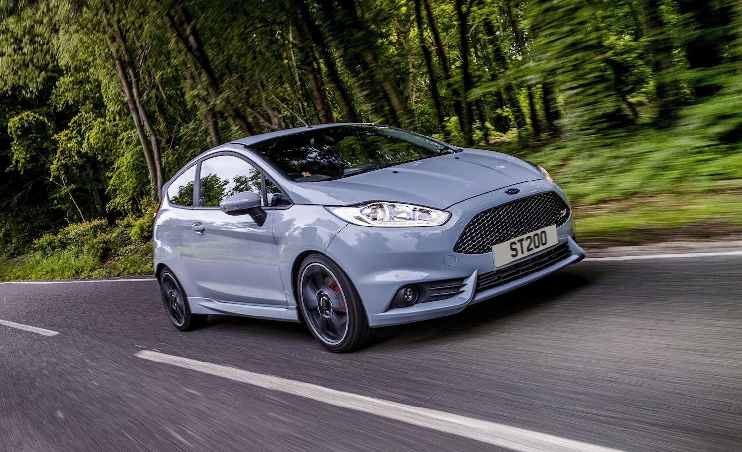Dans cette version sur-boostée, la sportive compacte se parera d’une teinte exclusive Gris Storm et de jantes en alliage 17’’ noir mat dédiées et d’étriers de freins rouges. La Fiesta ST200 reprend également la grande calandre trapézoïdale en nid d’abeille, le pare-chocs avant avec spoiler intégré, les jupes de bas de caisse latérales, le pare-chocs arrière couleur carrosserie avec diffuseur et le grand becquet arrière de la Fiesta ST. A l’intérieur, la Fiesta ST200 accueille des sièges avant Recaro partiellement recouverts de cuir avec surpiqûres argentées et des plaques de seuil de porte éclairées spécifiques, mais également des inserts en fibre de carbone sur le tableau de bord, des pédales et un pommeau de vitesse en alliage, et un volant ST.