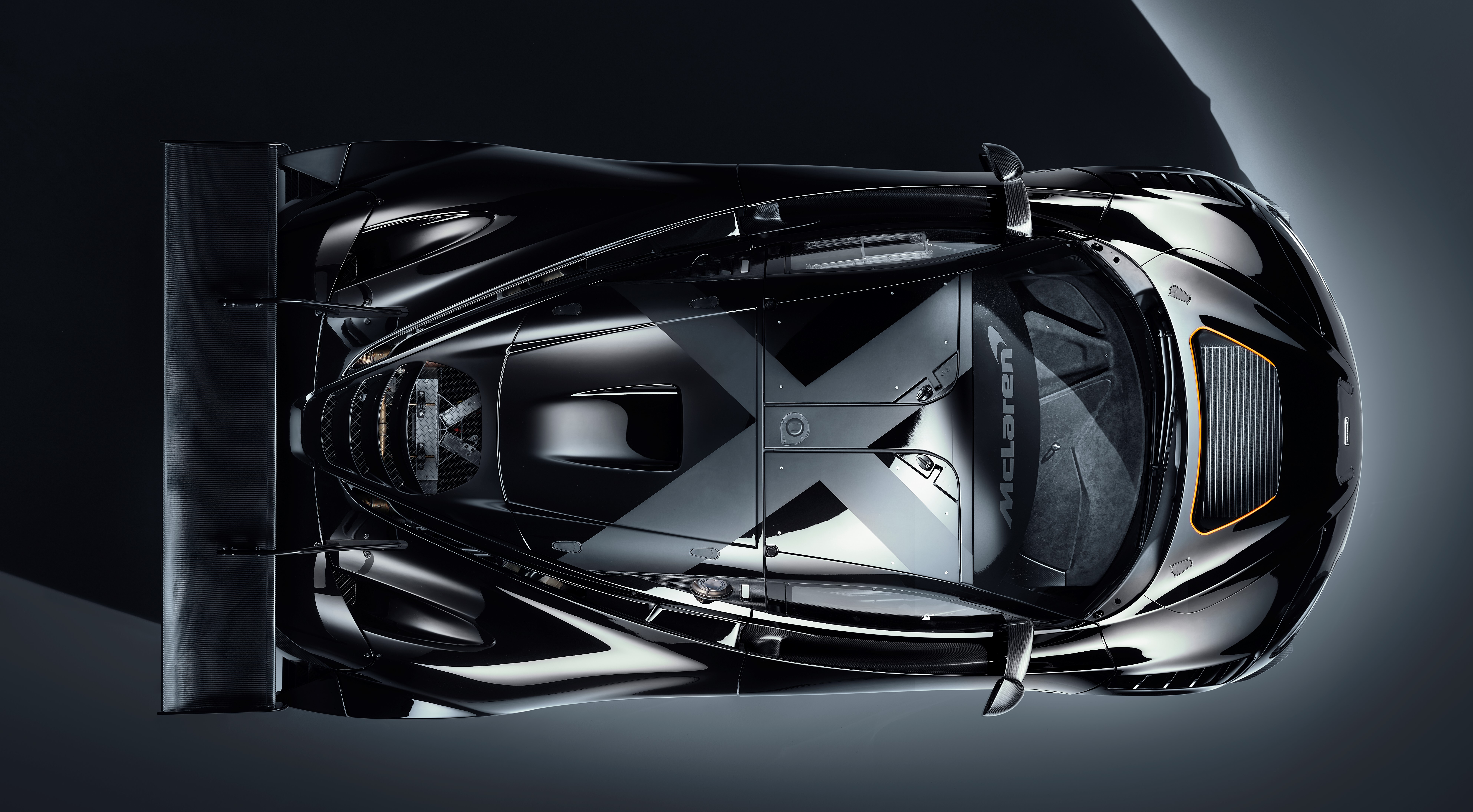 Le programme de développement a mis l’accent sur l’ingénierie pure, l’aérodynamisme innovant et la conception efficace, avec des milliers de kilomètres de piste parcourus en Europe et au Moyen-Orient. Libérée des réglementations sportives, la 720S GT3X est une version optimisée en termes de performances de la voiture de course GT3, déjà personnalisée, dont les lignes fluides de la carrosserie ont été développées à l’aide de la technologie CFD (Computational Fluid Dynamics) et de la soufflerie de Formule 1. La forme aérodynamique sculptée est finie à la main dans une peinture métallique MSO Carbon Black. Une rayure raffinée en orange McLaren – un clin d’œil aux voitures de Formule 1 McLaren des années 1960 qui ont remporté des courses historiques – accentue les bords inférieurs de la carrosserie moulante et le bord extérieur des jantes noires brillantes à verrouillage central, tandis qu’un graphique en forme de « X » s’étend sur le toit supérieur.