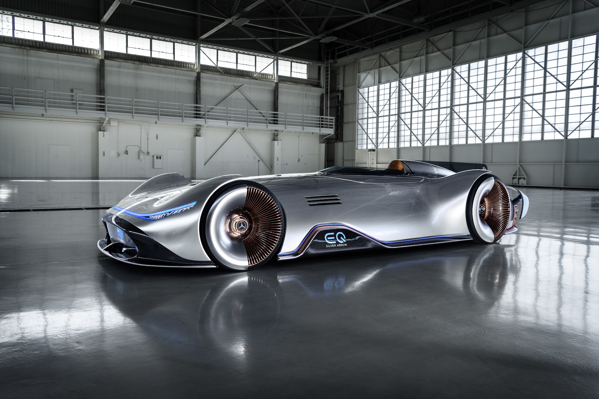 avec ses Flèches d’argent historiques – notamment grâce à leur forme aérodynamique », raconte Gorden Wagener, Chief Design Officer chez Daimler AG. « La Vision EQ Silver Arrow perpétue cette tradition. Conçu pour des accélérations et un plaisir de conduite maximums, elle incarne le luxe progressiste et donne un avant-goût du futur de notre design, portant ainsi le langage des formes de notre nouvelle marque de produit et de technologie EQ à son apogée. »