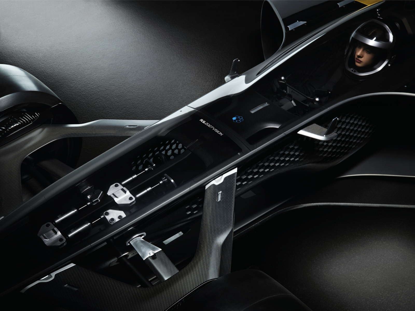 Avec son cockpit transparent, le concept R.S. 2027 Vision offre au public une vue complète du pilote installé au volant. C’est une pièce imprimée en 3D dans une matière légère et résistante. Il a été dessiné sur mesure en fonction des mensurations du pilote, de la même manière que le design des modèles Renault est directement inspiré par le corps humain.