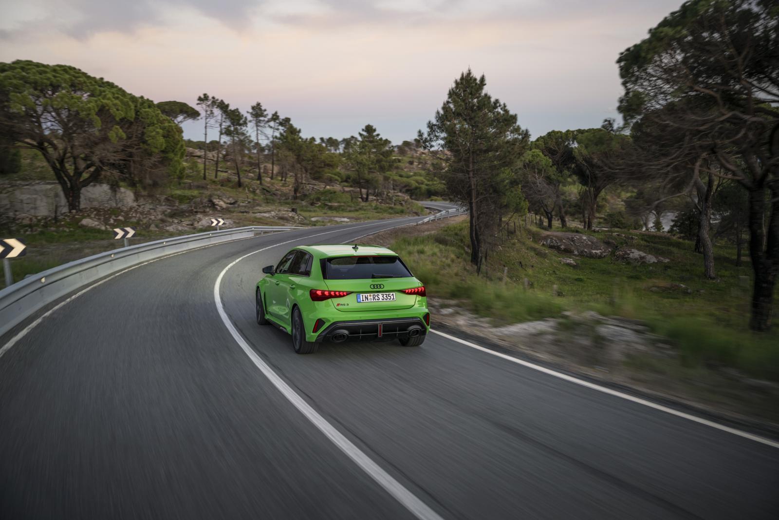 L’Audi RS 3 offre désormais de meilleures performances dans les virages, évite le sous-virage dès l’entrée dans une courbe et tourne plus facilement grâce à un réglage fin, y compris la vectorisation du couple de freinage. Grâce aux interventions de freinage finement dosées sur les roues intérieures, la voiture de sport compacte suit le rayon de courbure du virage avec plus de précision qu’auparavant, aussi bien en charge partielle qu’en phase de poussée, et peut être positionnée plus tôt et mieux pour sortir du virage. En d’autres termes, le conducteur peut accélérer l’Audi RS 3 plus tôt et s’inscrire dans des virages à des vitesses plus élevées. La dynamique latérale améliorée est particulièrement impressionnante et pleinement démontrée sur circuit en mode RS Performance – et en pleine intensité lorsque l’ESC est désactivé.